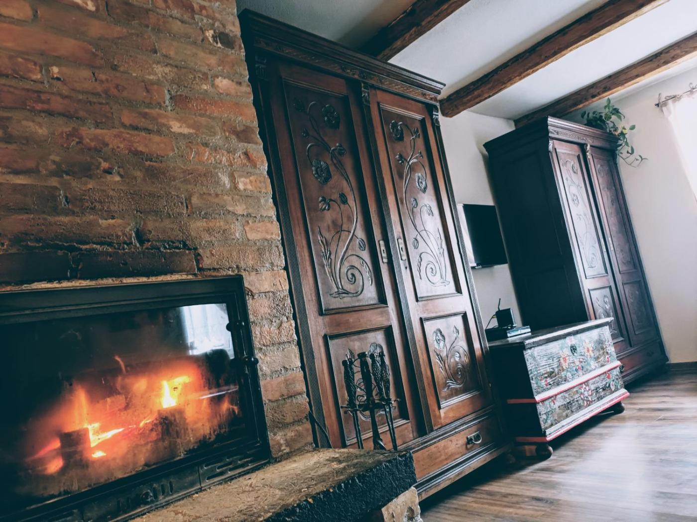 One-Bedroom Apartment. This apartments special feature is the fireplace. Featuring a private entrance, this air-conditioned apartment consists of 1 living room, 1 separate bedroom and 1 bathroom with a walk-in shower and a hairdryer. Guests will find a stovetop, a refrigerator, kitchenware and a microwave in the well-fitted kitchen. The apartment also offers a barbecue. Boasting a terrace with ancourtyard view, this apartment also provides a minibar and a flat-screen TV with satellite channels. The unit offers 3 beds.