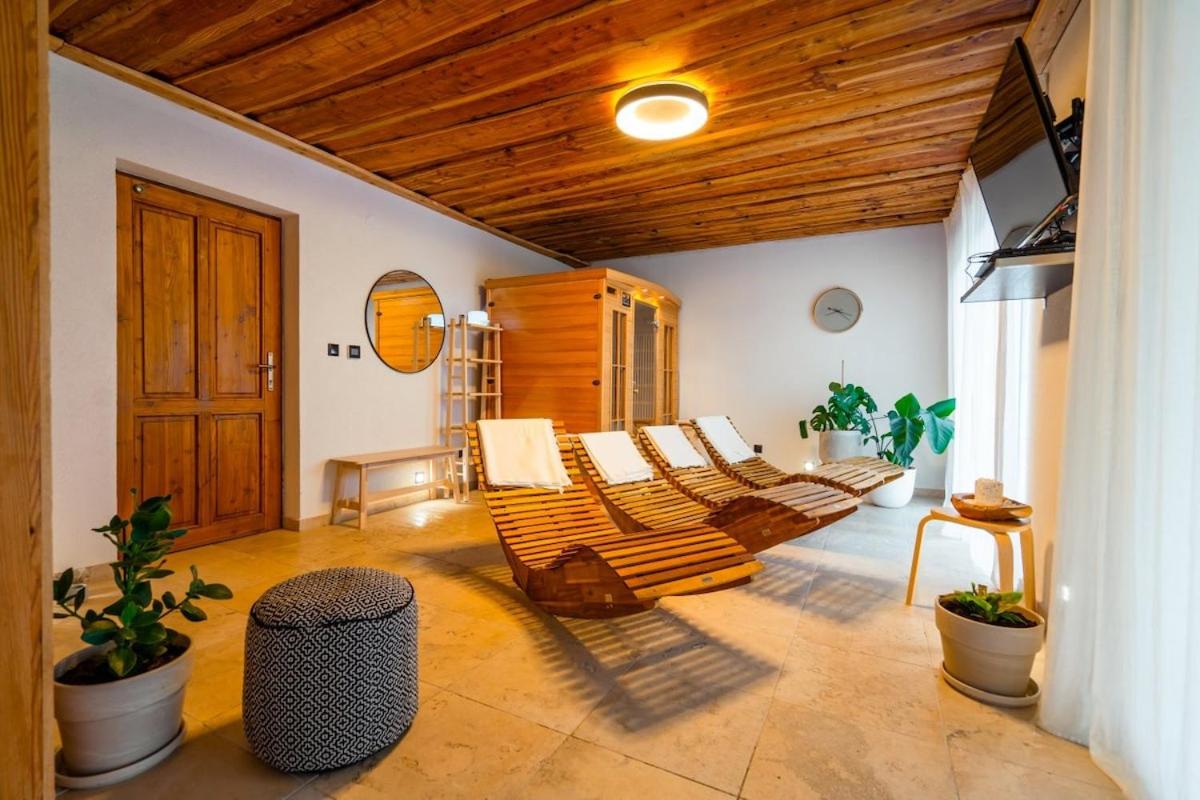 Three-Bedroom House. This luxurious holiday home offers a private pool, a hot tub and a sauna. The holiday homes kitchen is available for cooking and storing food. Featuring a terrace with garden views, this holiday home also provides a washing machine and a flat-screen TV. The unit offers 3 beds.